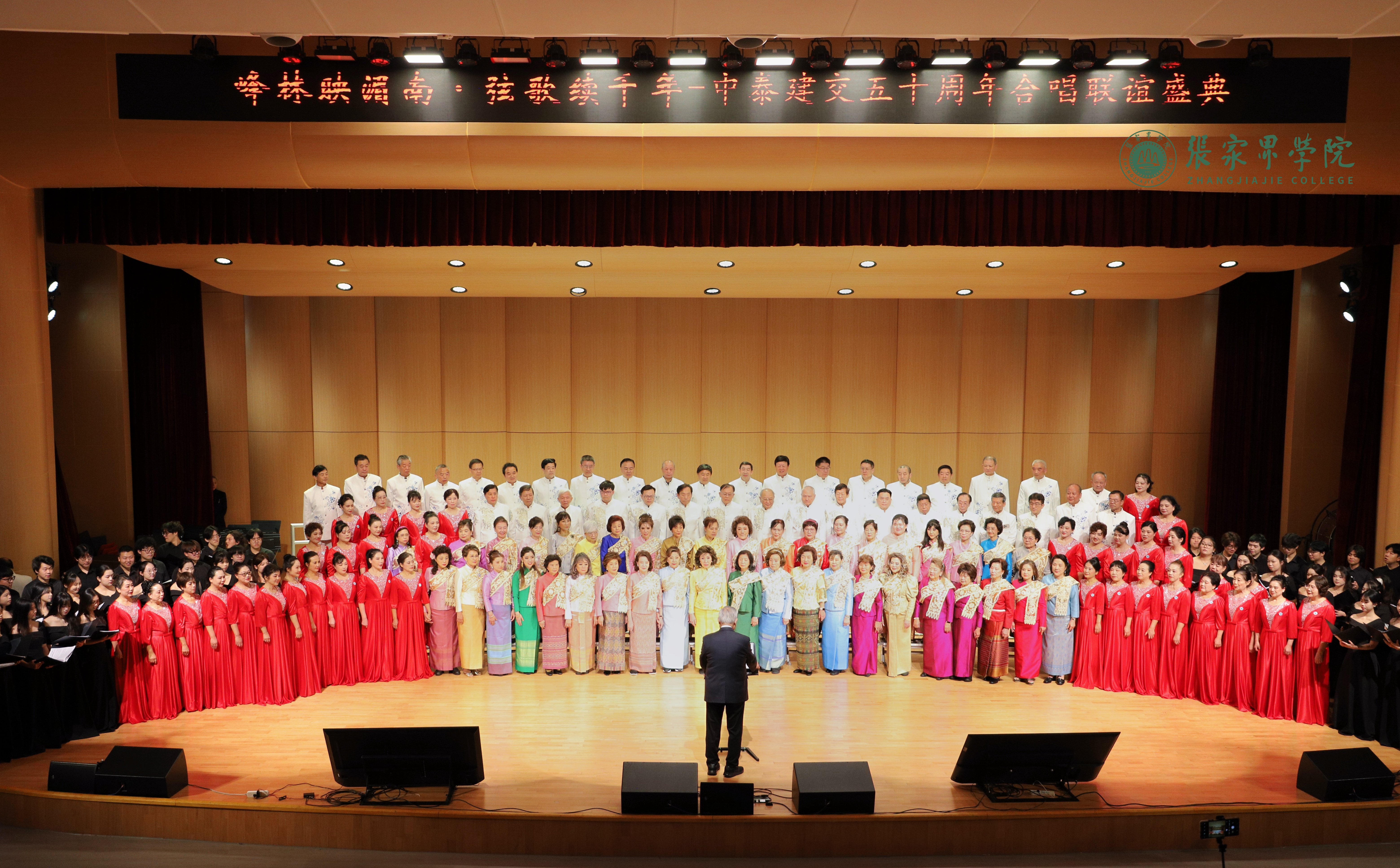 2025-11-1311月16日下午,“峰林映湄南·弦歌续千年——中泰建交五十周年合唱联谊盛典”在张家界学院音乐厅举行。中泰两国合唱团体以歌为媒,共叙建交五十周年的深厚情谊。泰华文化教育基金会副主席、泰国乐运合唱团团长何韵,国家一级演员、前中央乐团合唱团团长、泰国乐运合唱团艺术指导兼指挥肖铭炎,张家界学院校长简德彬,副校长范本祁,董事会秘书姚星明以及各二级单位主要负责人参加活动。