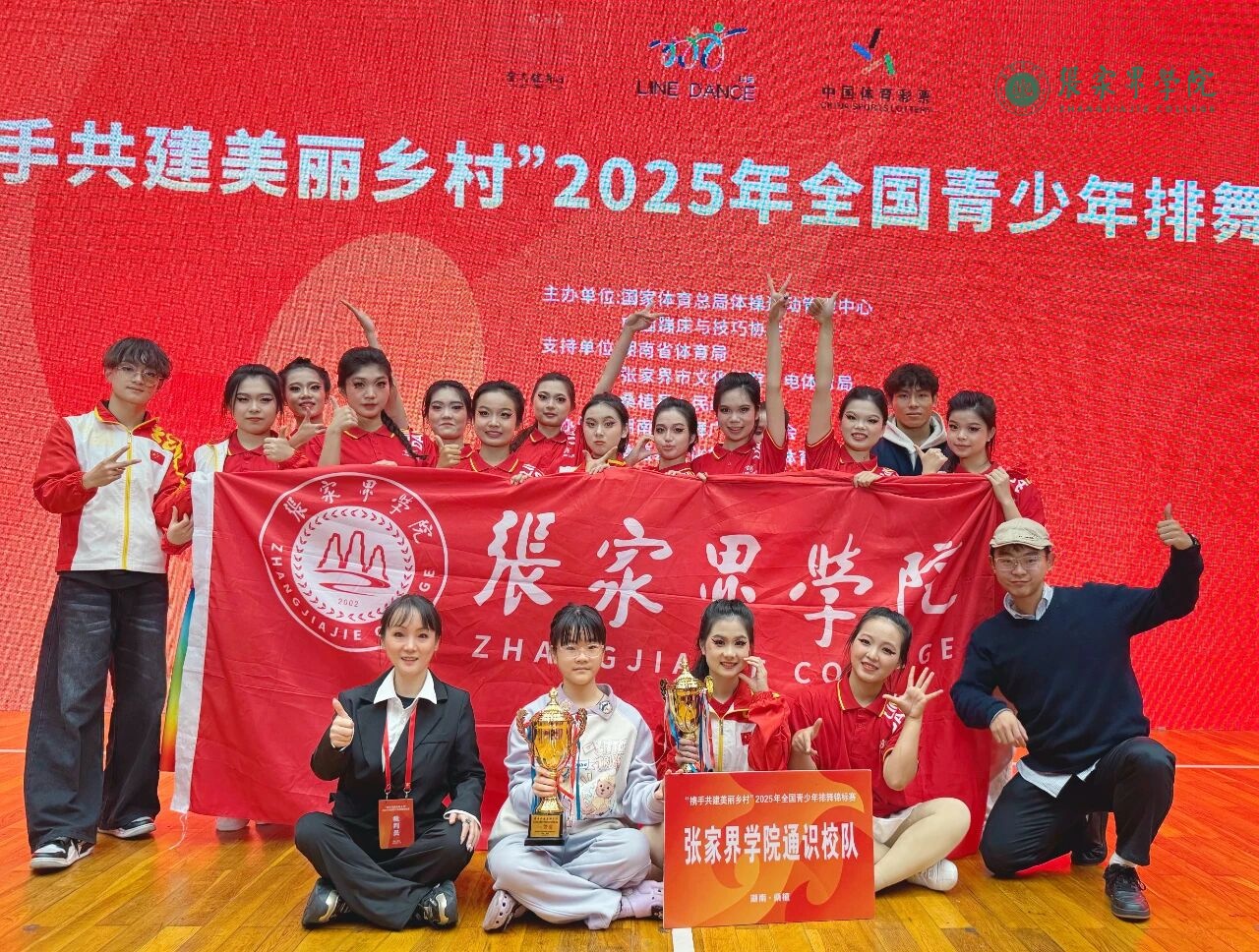 11月8日,“携手共建美丽乡村”2025年全国青少年排舞锦标赛,在湖南省桑植县贺龙体育馆拉开帷幕。经过多轮激烈角逐,张家界学院代表队最终摘得公开组小集体规定一等奖、公开年龄组小集体自选一等奖、公开组小集体串烧二等奖,以及公开组小集体团体总分第一名四项荣誉。