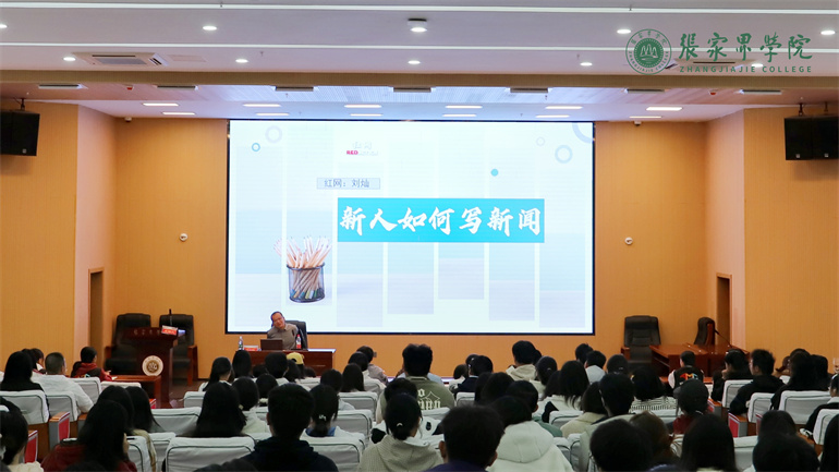为进一步提升我校宣传工作水平,帮助感兴趣的师生了解新闻写作与新媒体运营技能,10月22日晚,宣传统战部在望岳楼诸子厅组织开展“新人如何写新闻”专题讲座。本次讲座特别邀请红网张家界站站长刘灿担任主讲人,宣传统战部副部长李洁出席活动,全校百余名学生到场聆听,现场还设置问答环节,互动氛围活跃。