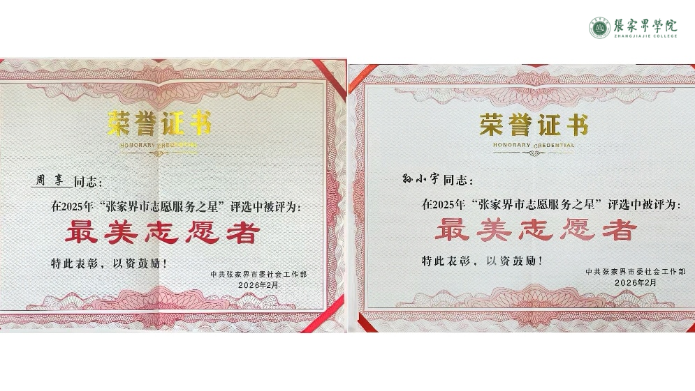 喜报!我校两名志愿者在2025年“张家界市志愿服务之星”评选中荣获“最美志愿者”称号