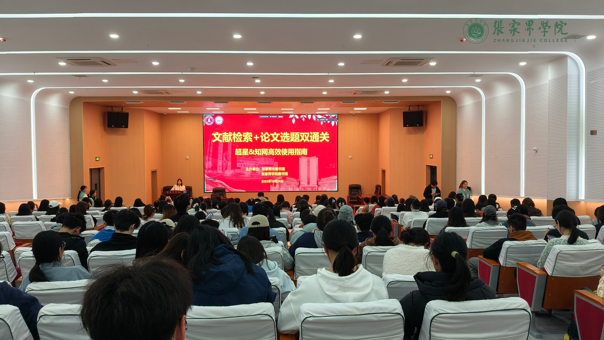 10月24日晚,张家界学院图书馆主办的阅读学分系列活动之“文献检索与论文选题双通关——超星、知网高效实用指南”主题讲座,在望岳楼诸子厅举行。本次活动由图书馆副馆长黄晓燕主持,吸引全校近300名学生到场。