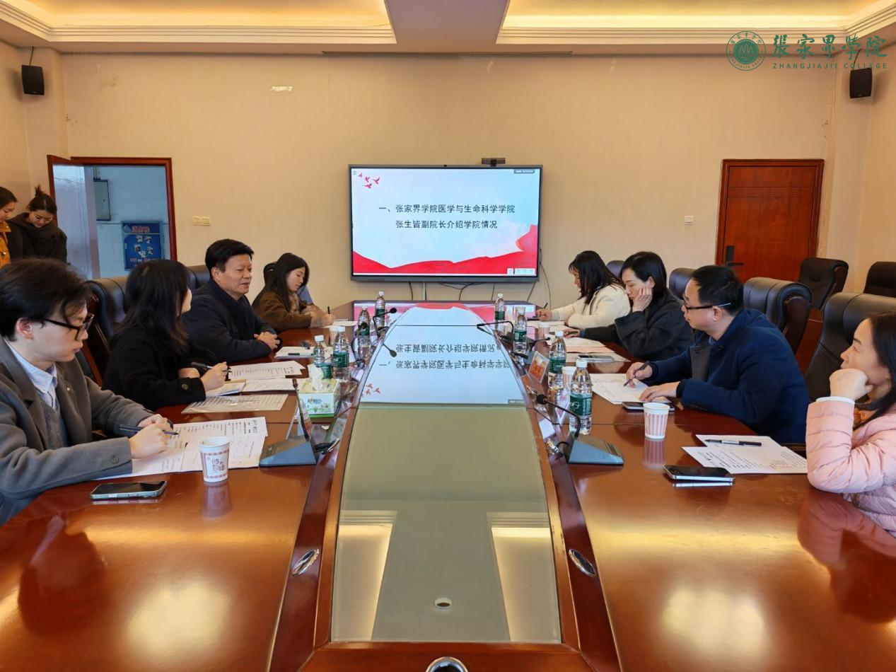 12月2日,湖南医药学院医学人文与管理学院副院长段凤华、物流与管理教研室主任曾祥鹏一行到访张家界学院,并在博学楼大会议室进行教学交流分享。我校经济管理学院党委书记宋扬,副院长宋科等参加会议。会议由宋扬主持。