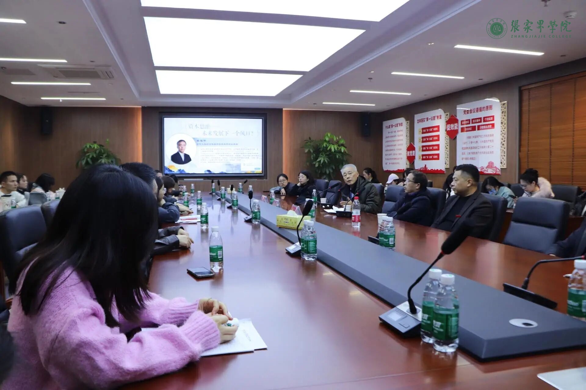 12月19日,张家界学院经济管理学院专题交流研讨会在修远厅举行。本次研讨会特邀清华大学经济管理学院市场营销系教授姜旭平作专题分享,由经济管理学院院长李军主持,学院领导及各专业教师代表参加会议,围绕高校教育转型、专业动态调整、产教融合落地等核心议题进行探讨。