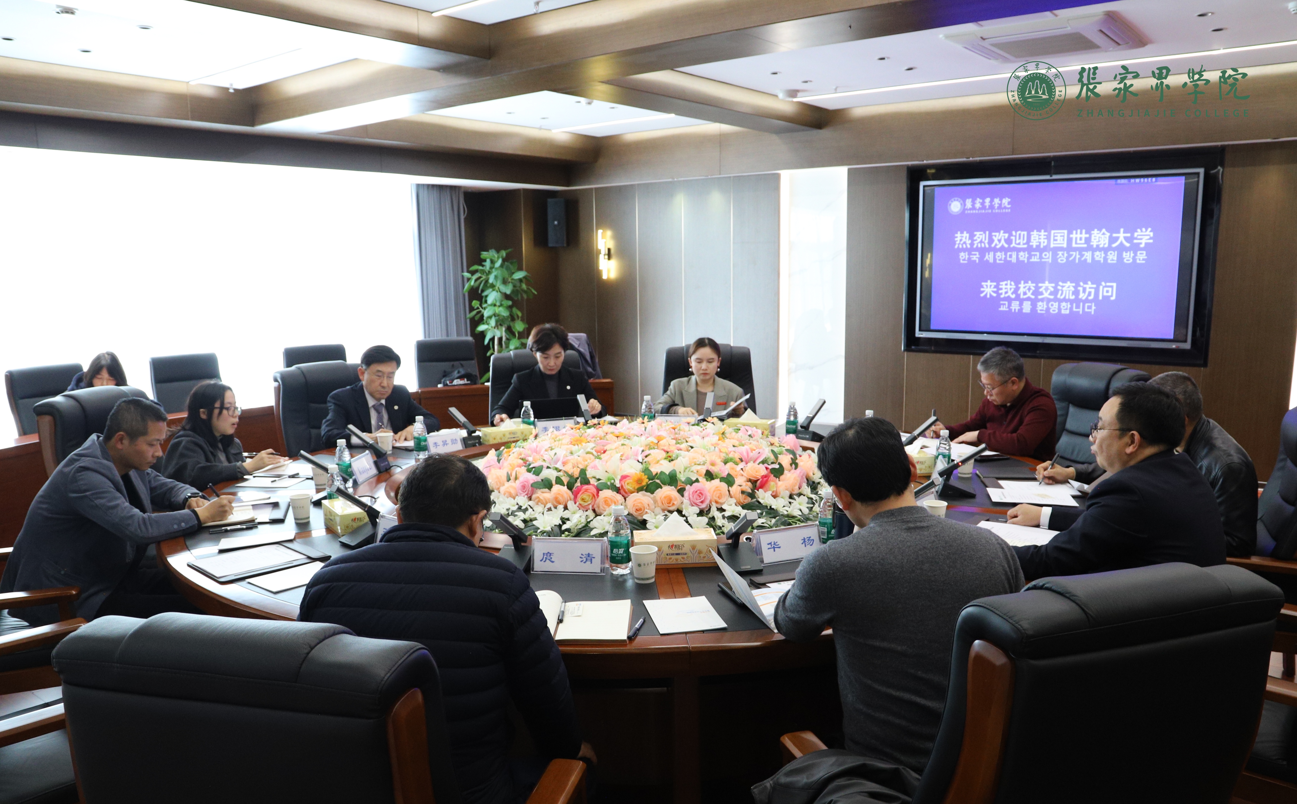11月28日下午,韩国世翰大学名誉总长李昇勋、国际交流院长李银嬉一行访问我校,并在望岳楼明志厅开展合作交流座谈会。张家界学院副校长何小飞,党政(外事)办公室主任华杨、文学院院长汤敬安、教务处处长庹清、继续教育学院与国际交流学院院长卜爱华、医学与生命科学学院党委副书记闵武凌等参加会议。