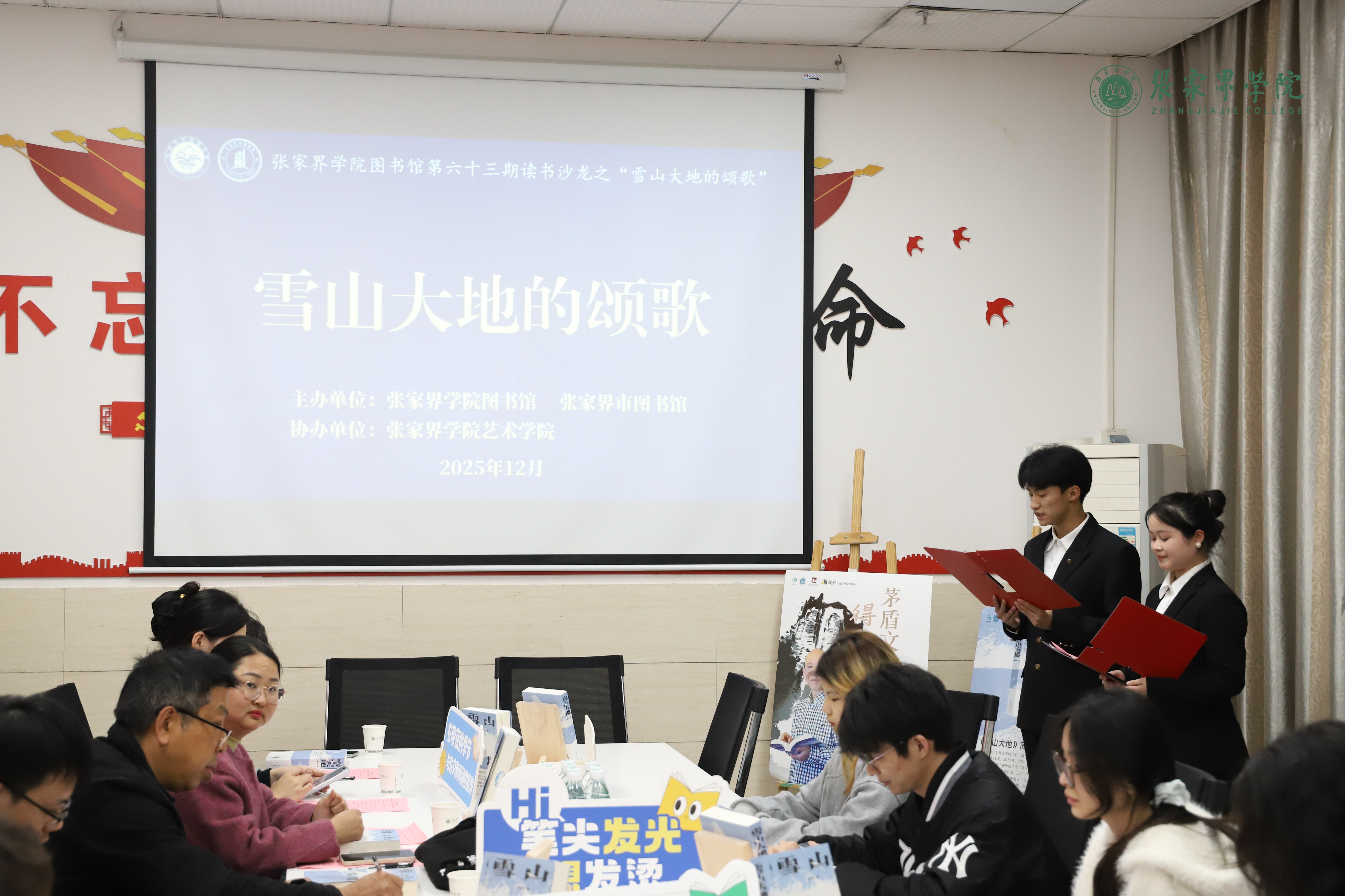 “在贺龙纪念馆矗立着这样一尊高大的贺龙元帅铜像,他手持烟卷,步履矫健,向家乡走来,向人民群众走来。仿佛在告诉我们他回家了,终于回来了……”12月10日晚,张家界学院邀请中国工农红军第二方面军长征出发地纪念馆副馆长谷秀芹,为同学们讲述张家界的红色故事。三百余名师生共聚一堂,在8个感人至深的红色故事中回望革命岁月,在经典红色歌曲的旋律里感悟信仰力量,共同上了一场沉浸式的思政课。