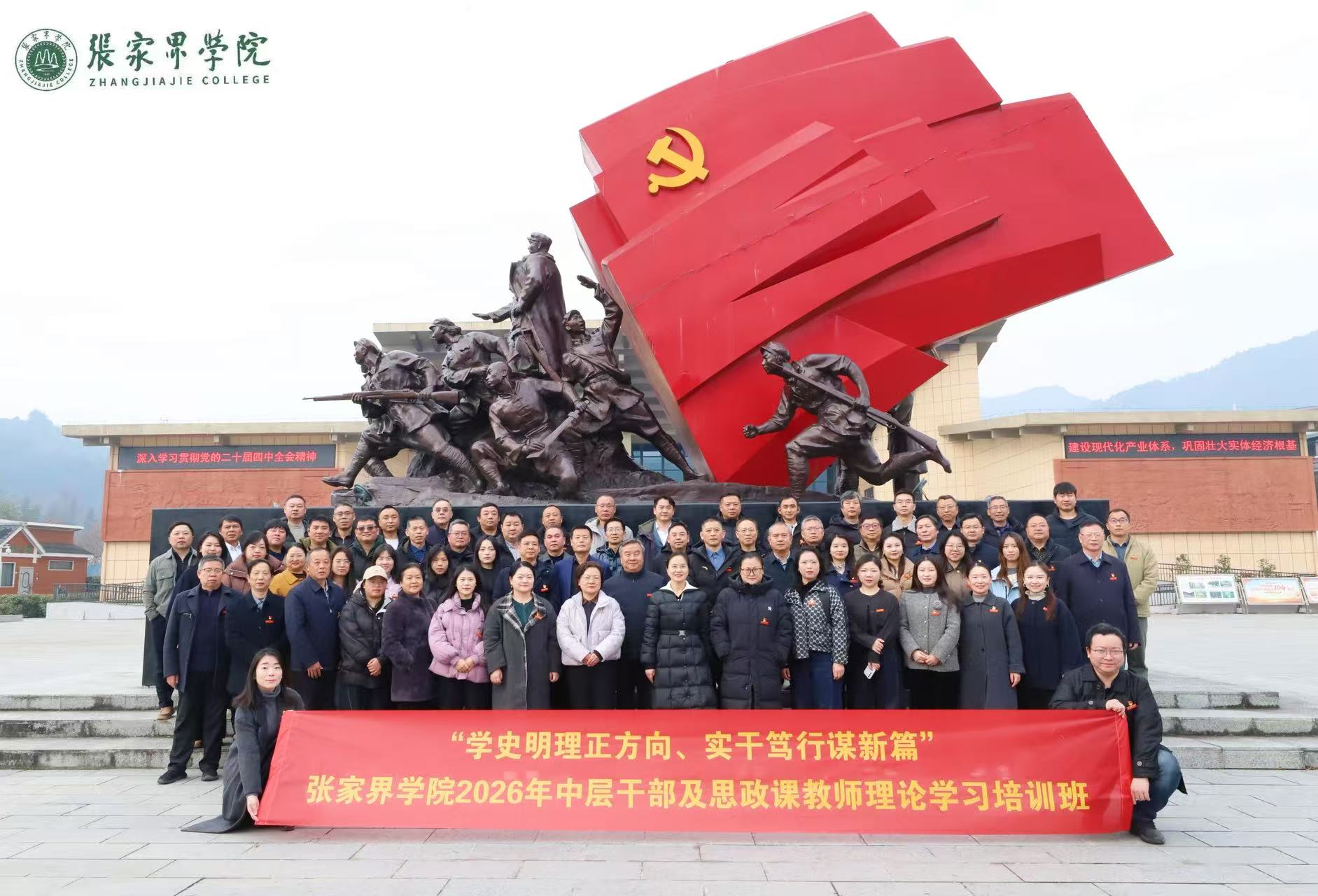 筑牢干部教师思想根基,凝聚办学治校奋进力量,1月16日,为期三天的张家界学院“学史明理正方向 实干笃行谋新篇”2026年中层干部及思政课教师理论学习培训班在龙山县茨岩塘教学基地圆满结束。学校全体校领导、中层干部及思政课教师近百人齐聚这片红色热土,在沉浸式学习中进一步加强党的创新理论学习,提升领导干部、思政教师政治素养与育人水平。