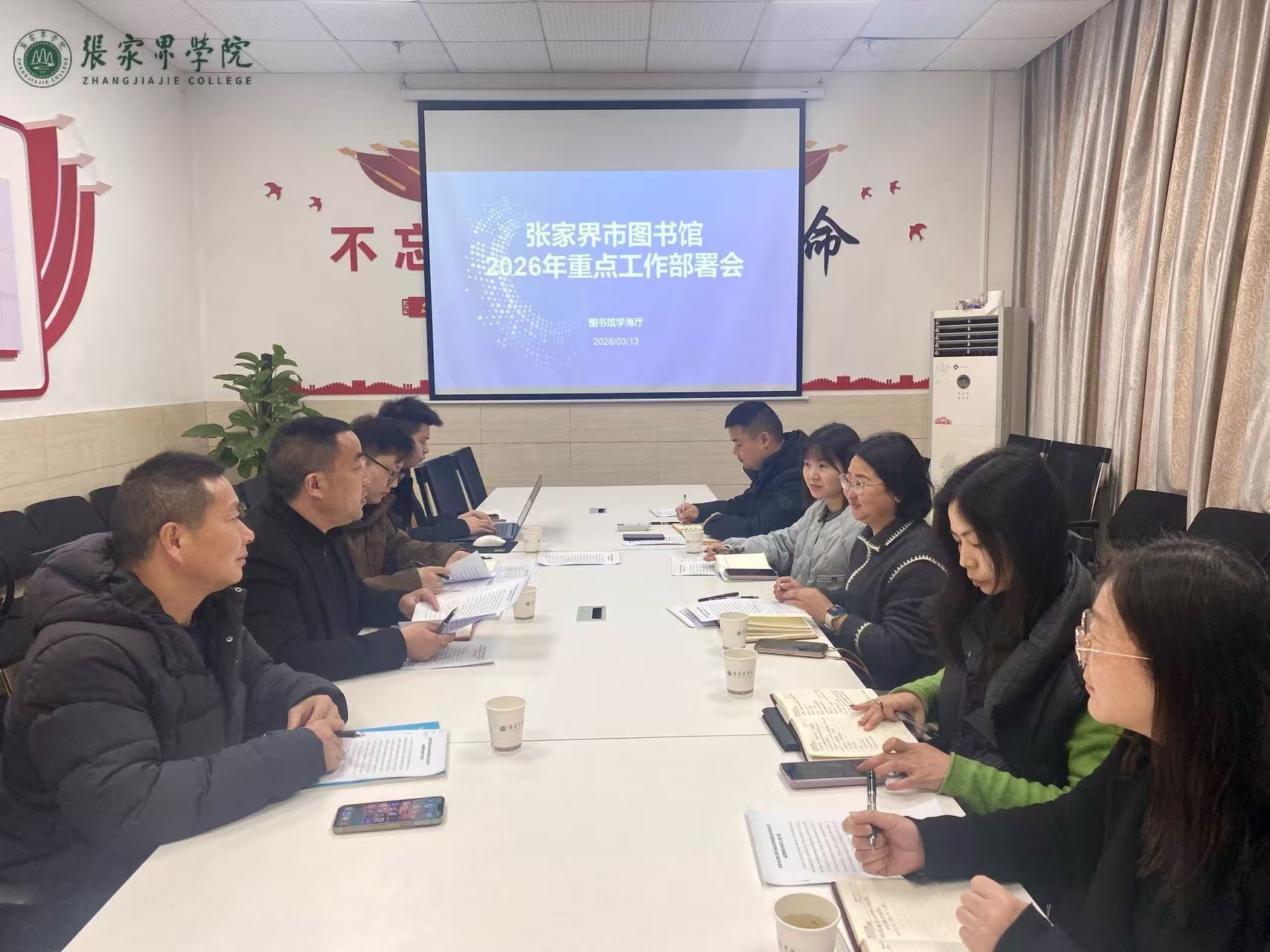 3月13日上午,张家界市图书馆2026年重点工作会议在我校学海厅召开。张家界市图书馆馆长唐志超、市文化馆副馆长朱小勇,张家界学院图书馆副馆长刘欢、黄晓燕等多方代表共同参会。