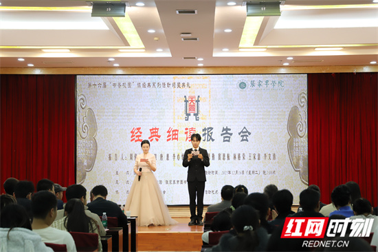 12月16日晚,张家界学院“经典细读报告会”暨第十六届“书香校园”读经典系列活动颁奖典礼在天问厅举行。张家界学院校长简德彬,张家界学院党委书记王宾吾,张家界学院副校长王常锋、向江,湖南省图书馆学会理事、张家界市图书馆学会理事长徐险峰,吉首大学旅游学院副院长董坚峰,张家界市图书馆馆长唐志超,桑植县图书馆馆长韦绍华等领导嘉宾出席活动,共同见证张家界学院文化育人的丰硕成果。