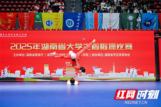 近日,2025年全国啦啦操联赛(湖南站)在湖南大众传媒职业技术学院举行。张家界学院啦啦操队在连续四天高强度赛事中奋勇争先,从全国 14 个省市 230 余支队伍、5000 余名选手中强势突围,一举斩获双人技巧、混合小团体技巧两项全国冠军,用实力展现了张家界学院学生的青春活力与竞技风采。