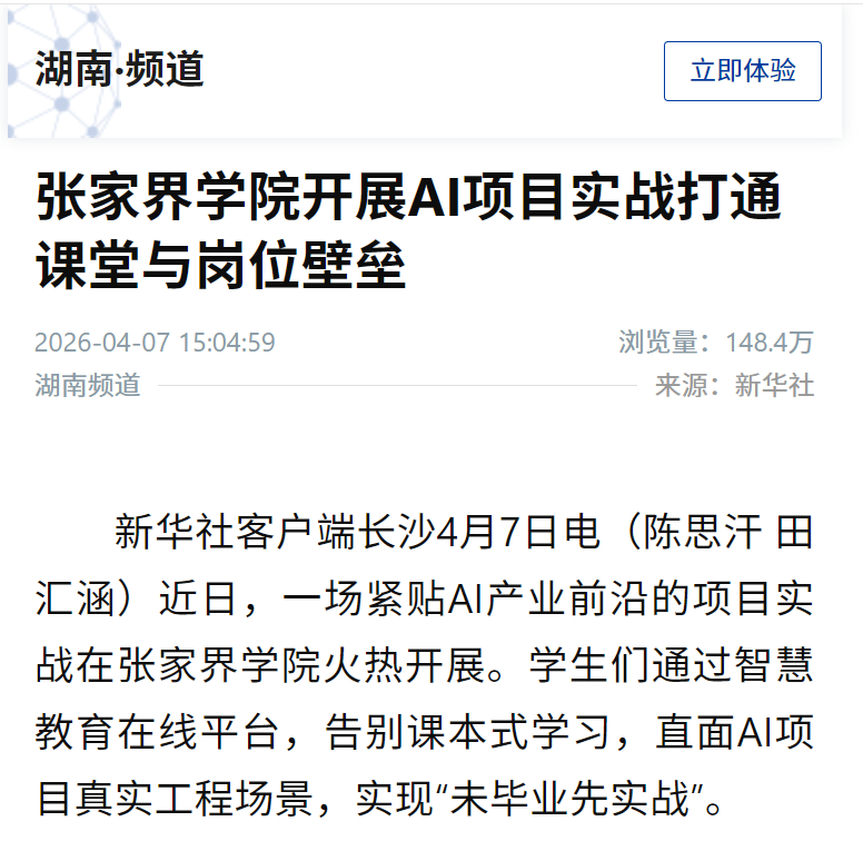 近日,一场紧贴AI产业前沿的项目实战在张家界学院火热开展。学生们全程深度参与科大讯飞智慧教育在线学习平台测试升级,告别课本式学习,直面真实工程场景,实现“未毕业先实战”。这是学校深化产教融合的生动实践,也让“课堂”与“岗位”之间的壁垒被进一步打破。
