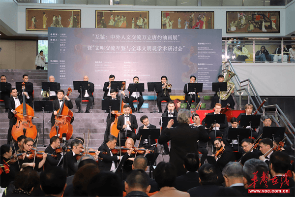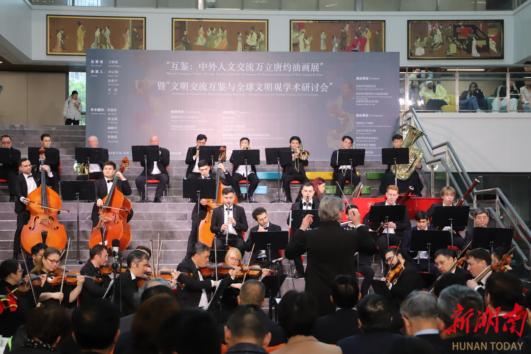 4月11日,“互鉴:中外人文交流万立、唐灼油画展暨文明交流互鉴与全球文明观学术研讨会”在张家界学院举行。来自中国、德国、美国、乌克兰等多个国家,以及国内知名高校与权威机构的专家、学者、艺术家共聚一堂,以油画展览为纽带共话文明互鉴,呈现了一场高规格国际文化艺术盛会。