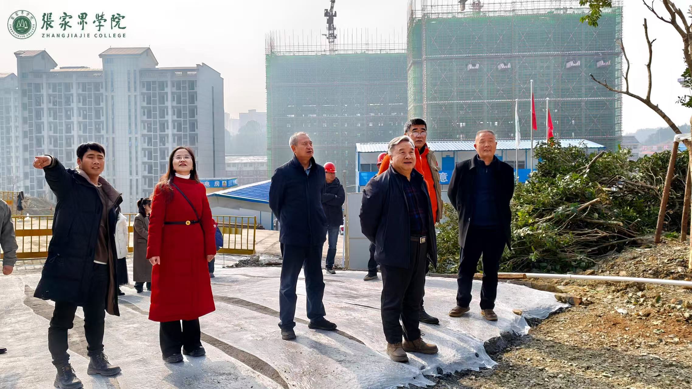 1月28日,张家界学院校长简德彬、副校长王常锋带领学校后勤基建处、党政办公室、宣传统战部等相关单位负责人,深入多个在建工程现场,实地检查项目建设情况,推进寒假期间校园基建工作。